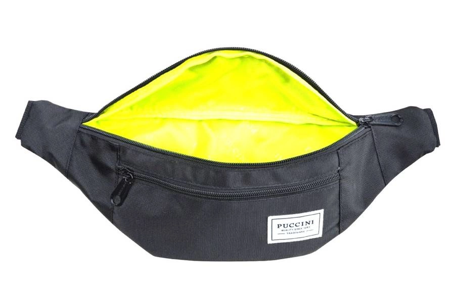 Designerska nerka marki Puccini z najnowszej kolekcji Vibe, wykonana z wysokiej jakości poliestru. Jej klasyczny krój sprawia, że idealnie wpasuje się jako modny dodatek codziennych, streetwearowych stylizacji. Oryginalnego charakteru nadaje mu kontrastowa, neonowa podszewka wykonana z logowanego materiału z poliestru. Jednokomorowy fason zapinany jest zamkiem błyskawicznym, dodatkowo posiada dwie funkcjonalne kieszenie zapinane suwakiem: większą z tyłu i mniejszą z przodu, na której znajduje się stylowa metka z nazwą marki. Nerkę można nosić w pasie, na biodrach lub w poprzek ciała dzięki regulowanemu paskowi, pozwalającemu na idealne dopasowanie długości do sylwetki. Wszelkie elementy metalowe są w kolorze całej nerki. Model posiada powłokę water-repellent, dzięki niej woda spływa z jego powierzchni.