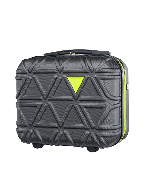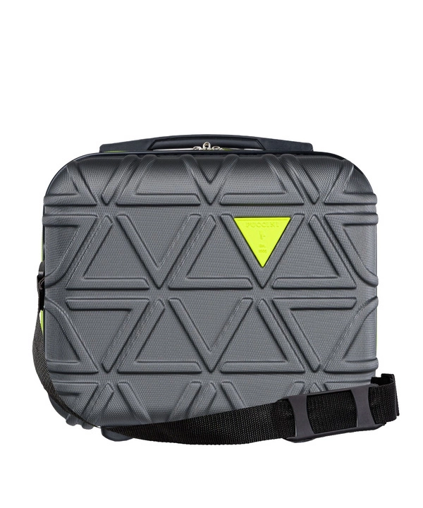 Kuferek z kolekcji California wykonany jest z wysokiej jakości tworzywa ASB, lekki a zarazem pojemny, idealnie sprawdzi się w każdej podróży. Wnętrze dzieli się na dwie komory. Frontową oddziela przegroda zapinana na suwak, na której znajduje się lusterko (mocowane na rzep) oraz dwie otwarte, przezroczyste kieszenie. W drugiej komorze znajdziemy elastyczne uchwyty na kosmetyki, dzięki czemu przewożone elementy przetrwają podróż w nienaruszonym stanie. Przed maksymalnym otworzeniem kuferka zapobiegają pasy zapinane na rzep. Akcesorium można przenosić w dłoni za pomocą wygodnego uchwytu lub na ramieniu, co umożliwia odpinany, regulowany pasek.