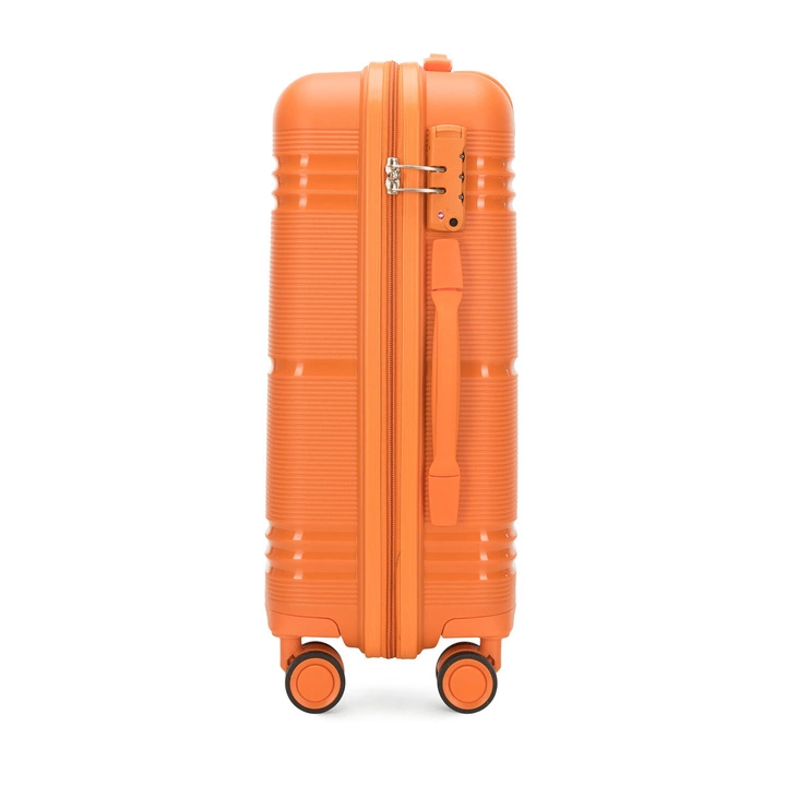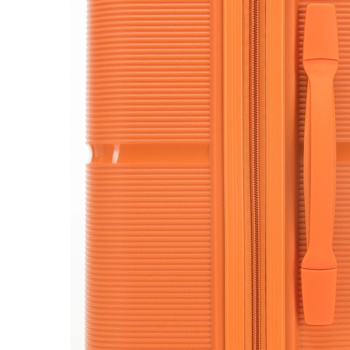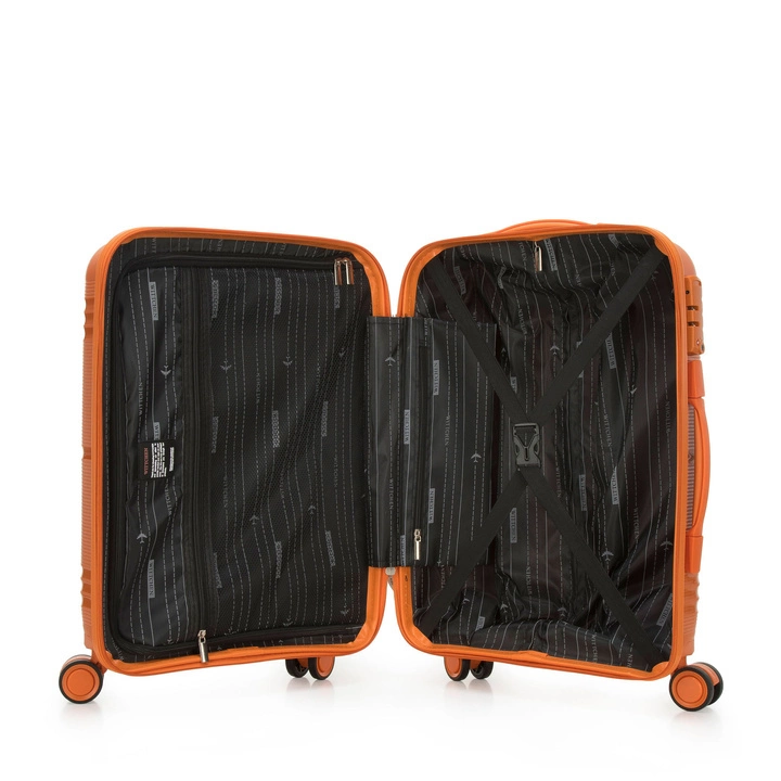 Ta wyjątkowa mała walizka będzie Twoim ulubionym dodatkiem podczas podróży. Wykonana została z polipropylenu, dzięki czemu jest bardzo elastyczna oraz lekka. Tłoczenie w poziome pasy o różnej szerokości dodaje całości charakteru. Wewnątrz znajdują się dwie, świetnie zorganizowane komory z zapinanymi kieszeniami i elastycznymi pasami, które zabezpieczą zawartość przed przemieszczaniem się. Ten niewielki model zabierzesz na pokład większości linii lotniczych. Dodatkowo dzięki czterem zwrotnym kółkom jest bardzo zwrotny, a teleskopowa, aluminiowa rączka ułatwia prowadzenie. Jednokolorowa walizka kabinowa z polipropylenu stylowo dopełni każdą Twoją podróż.