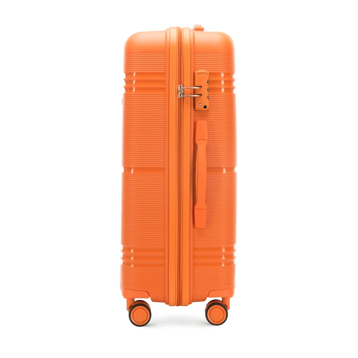 Ta stylowa walizka o nowoczesnym designie przykuwa wzrok i przyda Ci się podczas każdego wyjazdu. Została wykonana z elastycznego i ultralekkiego polipropylenu, więc wygodnie będzie z nią podróżować. Wewnątrz jest świetnie zorganizowana: z łatwością zachowasz w niej porządek i spakujesz się na kilka dni. Zamek z systemem TSA zadba o bezpieczeństwo Twojego bagażu. Ten model ma cztery podwójne kółka i teleskopową, aluminiową rączkę, dzięki czemu wygodnie będzie go prowadzić. Jednokolorowa średnia walizka z polipropylenu to wyjątkowy dodatek, który dopełni każdą Twoją podróż.