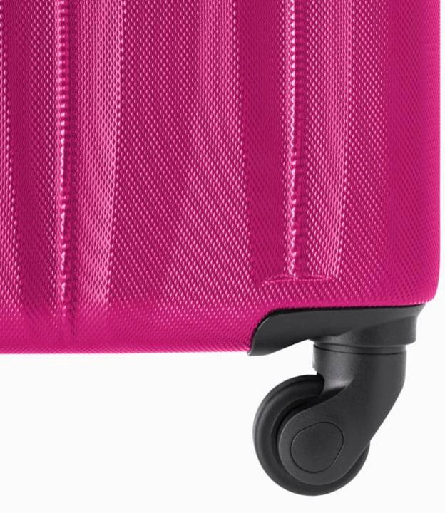 Walizka została wykonana z wysokiej jakości tworzywa ABS charakteryzującego się dużą twardością. Dzięki nowoczesnemu układowi jezdnemu: cztery obrotowe kółka 360 stopni, walizka jest zwrotna i bez problemu można przemieścić ją w inne miejsce, bez względu na jakość nawierzchni. Wysuwany, stopniowany stelaż z możliwością regulacji wysokości pozwala na optymalne dopasowanie długości rączki do osobistych preferencji. Walizki na górnej i bocznej powierzchni posiadają uchwyty ułatwiające podnoszenie (walizka w rozmiarze kabinowym posiada tylko górny uchwyt). Na jednej ze ścian bocznych znajdują się również cztery ochronne nóżki, które pozwalają na położenie walizki bez ryzyka zarysowania (walizka w rozmiarze kabinowym nie posiada nóżek ochronnych).