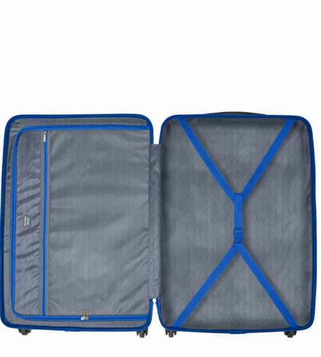 Główna komora walizki podzielona jest na dwie części. Frontową komorę zamyka klapa z kieszenią z siatki, która zdecydowanie ułatwi organizacje bagażu. Druga komora posiada pasy mocujące, służące do przymocowania odzieży, dzięki czemu dotrze ona na miejsce w idealnym stanie. Wszystkie elementy metalowe są w kolorze srebrnym.