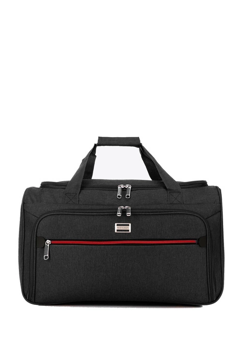 Ta torba to praktyczny dodatek na wiele okazji: zarówno na trening, jak i kilkudniowy wyjazd. Wykonana została z wytrzymałego poliestru, który łatwo utrzymać w czystości. Jest dość lekka i bardzo pakowna: zmieścisz w środku wiele potrzebnych rzeczy, takich jak na przykład kalendarz, ręcznik, bidon z wodą, buty na zmianę i kilka drobiazgów. W wygodnych, zewnętrznych kieszeniach schowaj rzeczy, do których chcesz mieć szybki dostęp. Ten model możesz nosić w ręce lub doczepić długi, regulowany pasek i zawiesić na ramieniu. Torba podróżna z czerwonym suwakiem to dodatek, który warto mieć w swojej szafie.