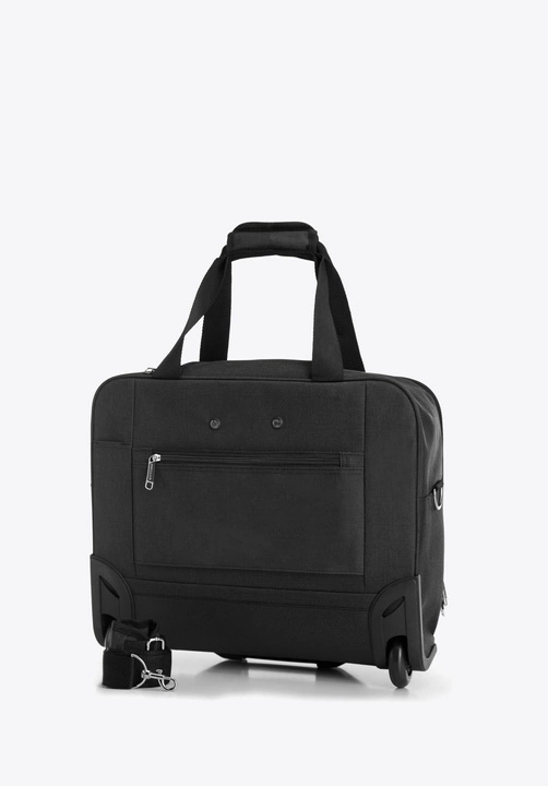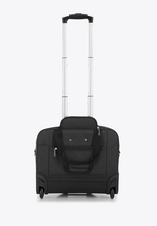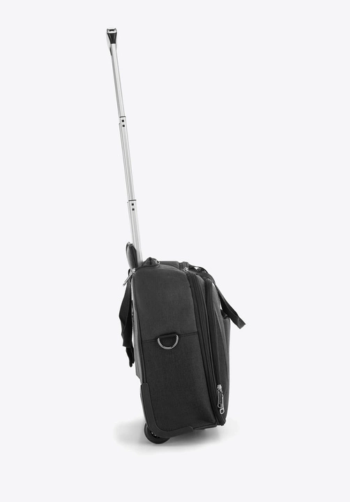 Ta praktyczna i funkcjonalna torba biznesowa spełnia funkcję torby na laptopa, jak i bagażu na krótki weekendowy wyjazd. W głównej komorze znajduje się miękko wyściełana kieszeń, w której zmieścisz urządzenie elektroniczne o maksymalnych wymiarach: 31 cm x 39 cm. Dodatkowo wewnętrzne szelki zabezpieczą Twoje rzeczy przed przemieszczaniem się. Przy suwaku znajduje się zapięcie na zatrzask i na rzepy, przy pomocy których możesz wyregulować stopień otwarcia komory. Ten model wykonany jest z wysokiej jakości poliestru, wzmocnionego nitami na spodzie. Ma dwa kółka oraz teleskopowy uchwyt, dzięki którym łatwo będzie go przenosić. Torba biznesowa na kółkach przyda się każdej, świetnie zorganizowanej osobie.Nasza rada: ta torba przyda Ci się zarówno w podróż służbową, jak i na co dzień do pracy.
