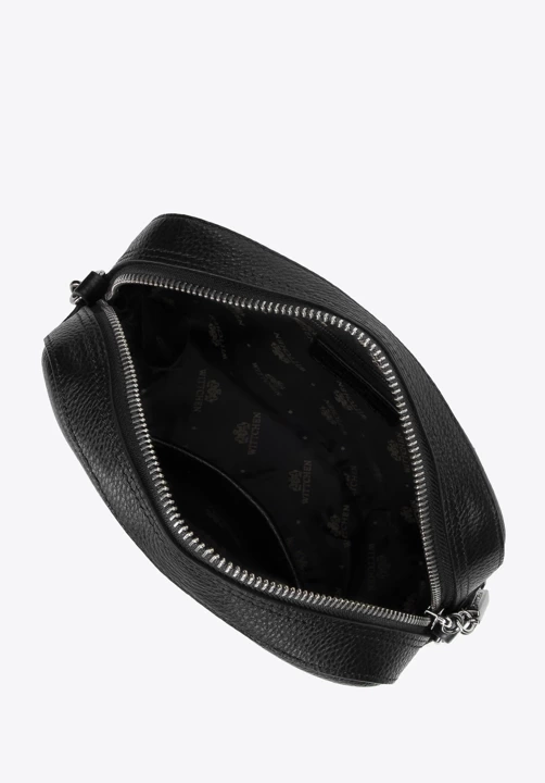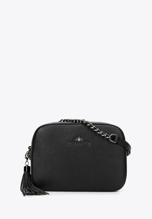 Ta elegancka torebka na błyszczącym łańcuszku przyda Ci się na wiele okazji. Ma pudełkowy, sztywny kształt, więc będzie ładnie wyglądała niezależnie od wypełnienia. W środku zmieścisz portfel, telefon, chusteczki, krem do rąk i kilka drobiazgów. Zabierz ją na eleganckie przyjęcie, do teatru lub na wyjście ze znajomymi – w każdej sytuacji doda Ci szyku. Wykonana została z wysokiej jakości skóry naturalnej o groszkowanej fakturze, więc posłuży Ci przez długi czas. Damska listonoszka skórzana pudełkowa na łańcuszku to ponadczasowy dodatek dla każdej kobiety.