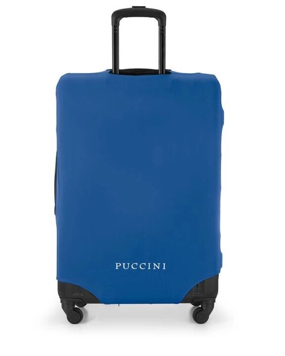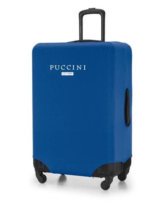 Ochronny pokrowiec na walizkę wykonany z wysokiej jakości poliestru zabezpieczy bagaż przed przypadkowym rozpięciem zamków oraz mechanicznymi uszkodzeniami zewnętrznymi. Elegancki model w kolorze czarnym, z dużym kontrastowym (białym) napisem Puccini z pewnością wyróżni walizkę spośród innych bagaży. Pokrowiec posiada otwory na teleskopową rączkę oraz uchwyty. Akcesorium zapinane jest na zamek, co więcej posiada dodatkowe zabezpieczenie w postaci elastycznych gum zapinanych klamrą.