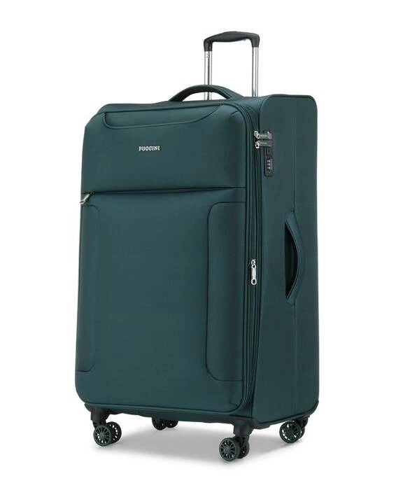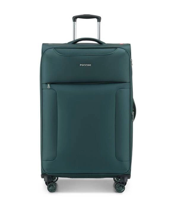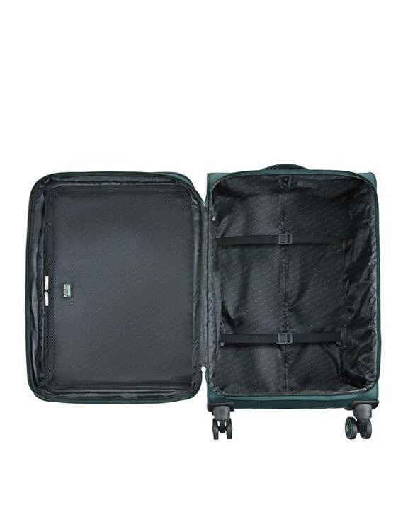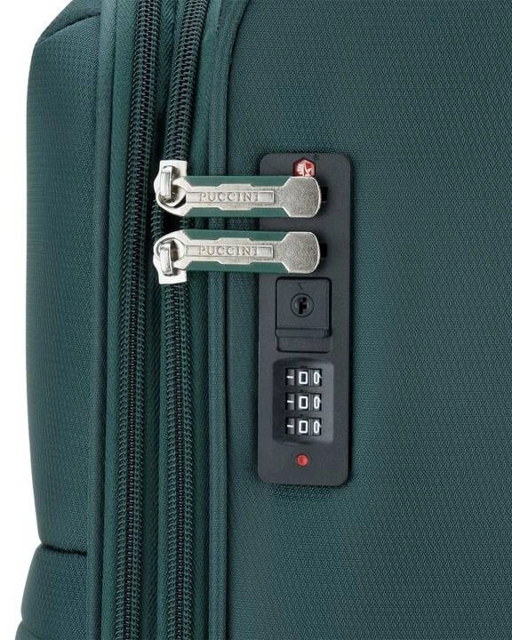 Skrupulatnie przemyślane wnętrze walizki zapewnia Państwu wygodę w pakowaniu i porządek podczas wyjazdu. Dzięki pasom, zapobiegającym przemieszczaniu się zawartości możesz być pewien, że Twoja odzież i rzeczy osobiste dotrą do celu podróży w idealnym stanie, co więcej na wewnętrznej stronie klapy zamykającej walizkę została umieszczona duża kieszeń z siatki. Dodatkowo na panelu frontowym znajdują się dwie funkcjonalne kieszenie zapinane na suwak: mniejsza i większa. Niezaprzeczalny atutem prezentowanych walizek Puccini z kolekcji Perugia, to możliwość powiększenia pojemności we wszystkich rozmiarach walizki (duża, średnia i kabinowa). Dzięki zastosowaniu dodatkowego zamka, każda walizka może zwiększyć swoją pojemność nawet o 20% . Wnętrze walizki wyścielane jest logowanym materiałem z poliestru.