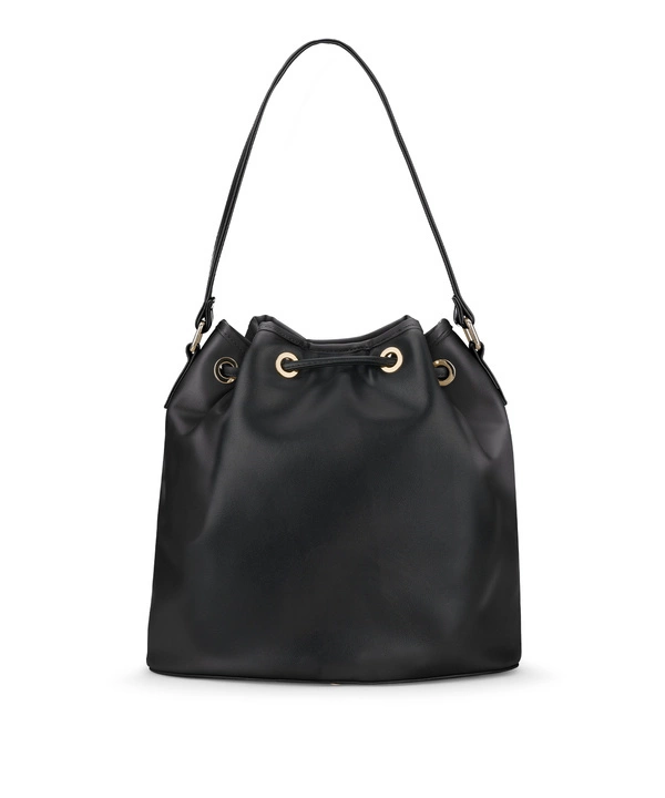 Torebka zapinana jest na magnesowy zatrzask oraz ściągana za pomocą troczków, co dodaje jej charakteru i funkcjonalności. Wyposażona w wygodny pasek o optymalnej długości, który umożliwia noszenie zarówno na ramieniu, jak i w dłoni. Wnętrze torebki oferuje trzy praktyczne kieszonki – dwie otwarte oraz jedną zapinaną na zamek, idealną do przechowywania drobnych przedmiotów.