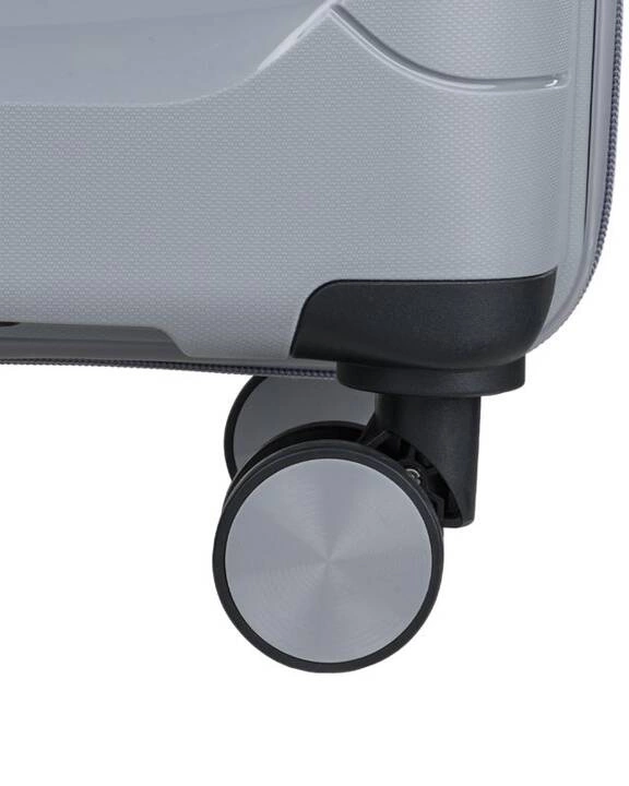 Wyposażona w uchwyty z boku i na górze, dzięki czemu zapewnia wygodne przenoszenie oraz regulację wysokości rączki, co pozwala dostosować ją do indywidualnych preferencji użytkownika. Dzięki zwrotnemu układowi jezdnemu oraz czterem skrętnym kołom 360 stopni, prowadzenie walizki staje się niezwykle łatwe i przyjemne, nawet na nierównej nawierzchni.