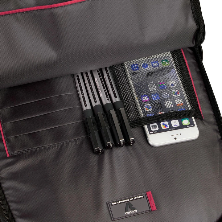 - w zewnętrznej kieszeni miejsce na klucze, telefon, długopisy, karty (mini organizer)