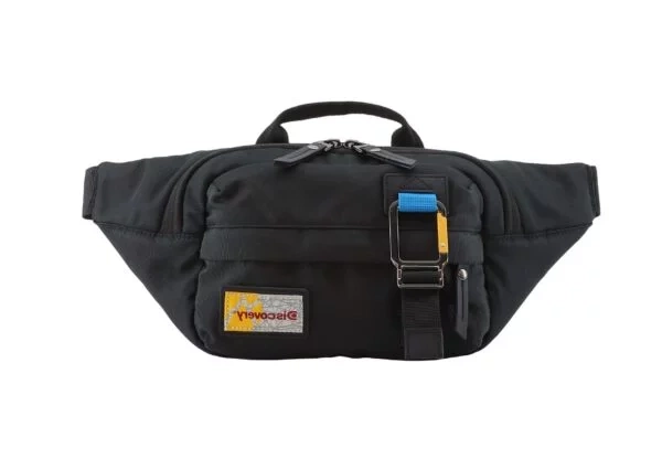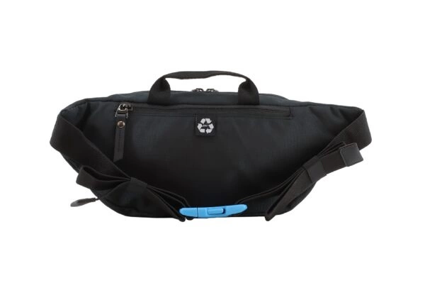 Torba biodrowa – nerka D00716 z dużą komorą główną na suwak i tylną kieszonką na zamek. Bezpieczna kieszonka RFID, specjalna kieszonka na telefon i karabińczyk do kluczy. Wykonana z wysokiej jakości materiału pochodzącego z przetworzonego plastiku.
