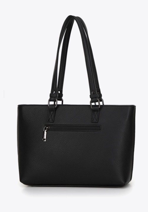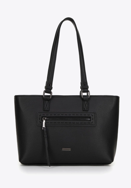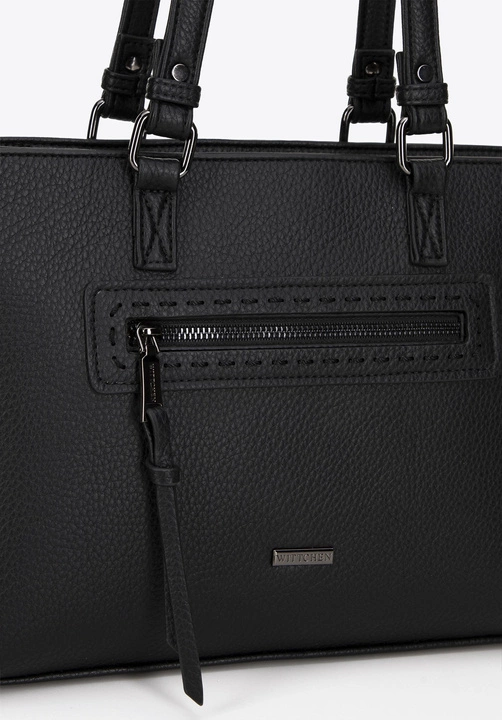 Ta torebka z ekoskóry nie tylko zachwyca designem, ale i spełnia wszystkie Twoje potrzeby. Posiada usztywnione dno zapewniające stabilność i wygodne dwie rączki, ułatwiające noszenie. Jednokomorowa konstrukcja idealnie nadaje się do przechowywania niezbędnych przedmiotów, wspierana przez dwie otwarte małe kieszonki i jedną na suwak. Z zewnątrz torebka wyposażona jest w praktyczne kieszenie na zamek błyskawiczny, idealne do bezpiecznego przechowywania drobnych rzeczy. Dodatkowo uroku dodaje dekoracyjnie obszyta kieszeń na przodzie, pod którą znajduje się logo WITTCHEN. Metalowe nóżki na spodzie zapewniają ochronę torebki przed zabrudzeniami i uszkodzeniami, gwarantując jej trwałość i praktyczność. Idealna propozycja dla każdej kobiety ceniącej sobie zarówno estetykę, jak i funkcjonalność w codziennym użytkowaniu.