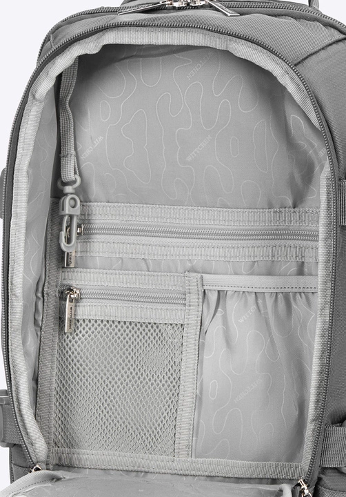 - Komora główna: Wnętrze komory, otwierającej się jak walizka, wyposażono w regulowane pasy, które zapewniają porządek i stabilność przedmiotów.