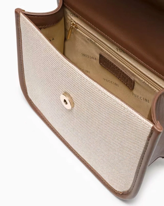 We wnętrzu torebki znajdziemy kieszeń na drobiazgi zapinaną na zamek. Środek został wyściełany łatwą w czyszczeniu, logowaną podszewką. Całość zamykana jest klapą z magnesowym zatrzaskiem, na której umieszczono ozdobny napis z nazwą marki. Wszystkie elementy metalowe są w kolorze złota.
