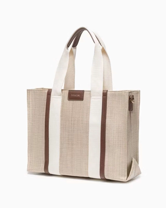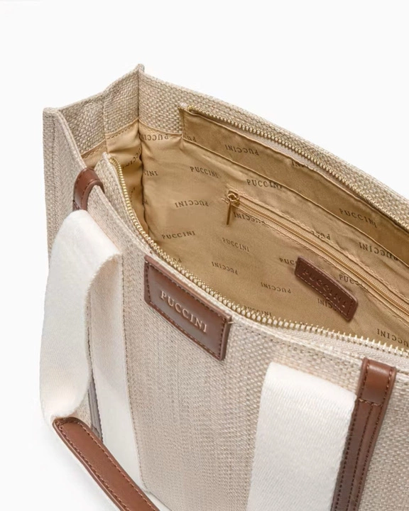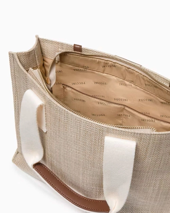 Na froncie znajduje się gustowny napis PUCCINI w kolorze złota. Przód torebki zdobią wstawki ze skóry ekologicznej