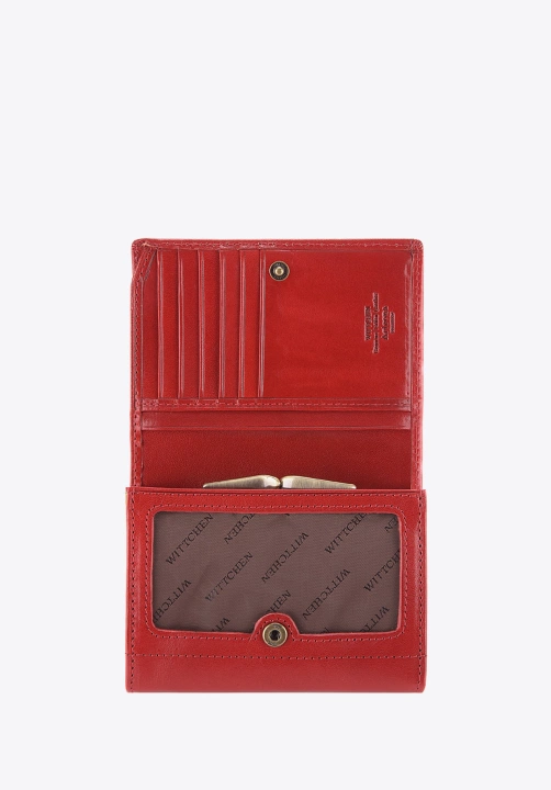 Średniej wielkości portmonetka damska wykonana z wytrzymałej, subtelnie połyskującej skóry cielęcej z pewnością zachwyci zwolenniczkę gustownych i praktycznych rozwiązań. Ozdobne logo z herbem WITTCHEN w kolorze starego złota dodaje klasy.