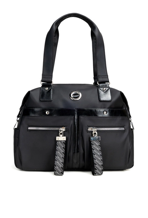 - na zewnątrz dwie małe kieszonki zamykana na zamek z ozdobnymi brelokami