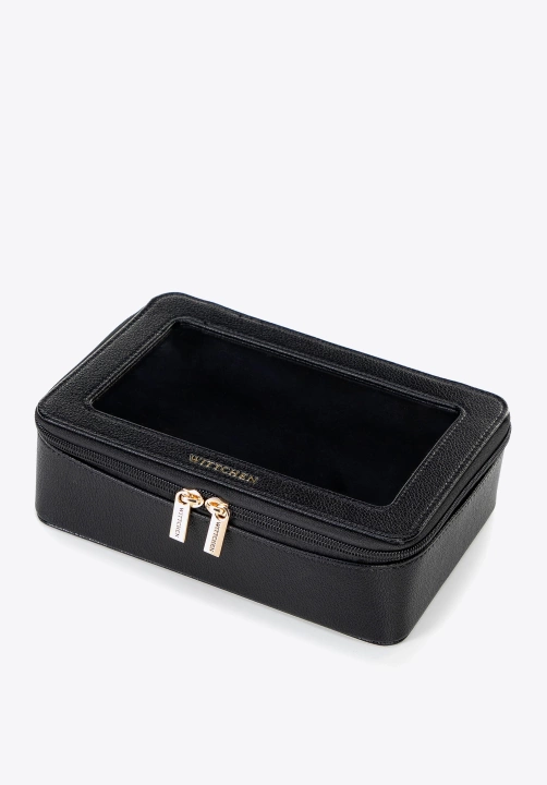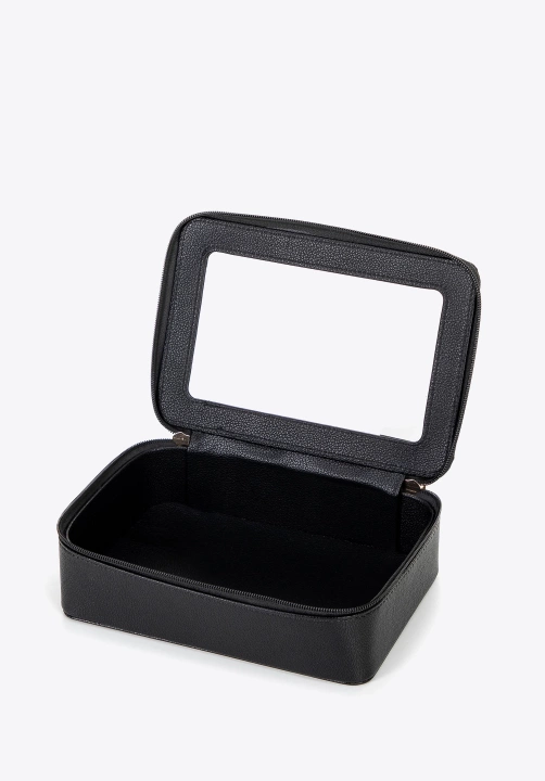 Prostokątna kosmetyczka o pudełkowym kształcie to praktyczne i stylowe rozwiązanie do przechowywania Twoich kosmetyków oraz drobnych akcesoriów. Wykonana ze skóry ekologicznej, zachwyca estetyką i łatwością pielęgnacji. Zamykana na zamek błyskawiczny, otwiera się od góry, co zapewnia szybki dostęp do zawartości. Górna część, wykonana z transparentnego materiału, pozwala bez otwierania zobaczyć, co znajduje się w środku – idealne rozwiązanie do użytku codziennego i w podróży.
