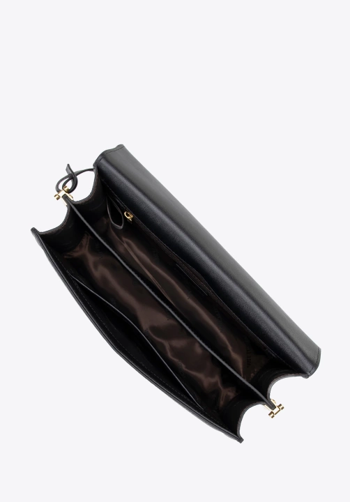Minimalistyczna forma i perfekcyjne wykonanie – ta listonoszka to ponadczasowy dodatek, który łączy elegancję z wygodą. Korpus wykonany ze skóry naturalnej, zachowuje swój sztywny fason, nadając stylizacjom wyjątkowy charakter. Torebka zamykana jest na praktyczny magnes, a jej wnętrze zostało podzielone na dwie komory, co zapewnia doskonałą organizację. Dekoracyjny, odpinany chwost z logo nadaje jej unikalny akcent, który przyciąga spojrzenia.