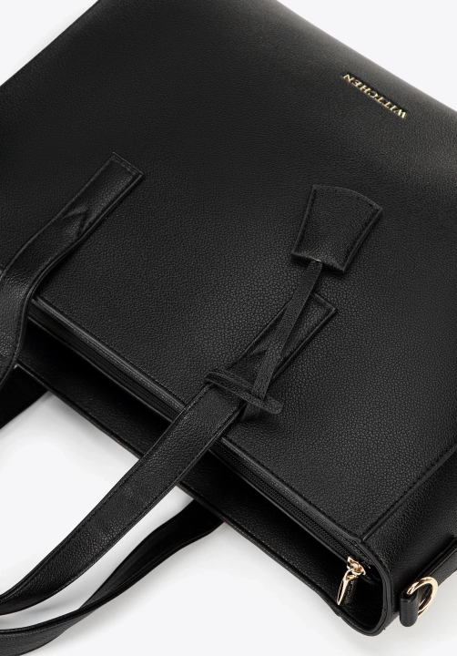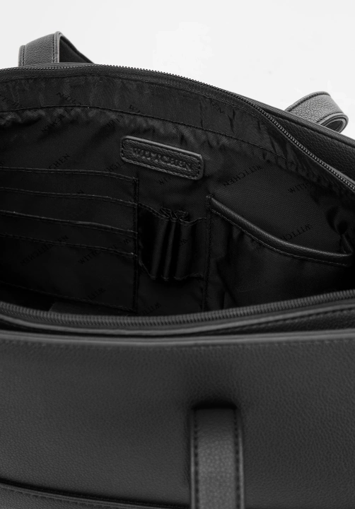Nasza torba na laptopa 16" to połączenie klasycznego stylu z kobiecą elegancją. Wykonana z ekoskóry, zachwyca dopracowaną formą i subtelnymi detalami, takimi jak odpinany chwost przy rączce. Zamykana na zamek, skrywa funkcjonalne wnętrze z wyściełaną kieszenią na laptopa 16" (23 × 38 cm) oraz przegródkami na drobiazgi i dokumenty – wszystko na swoim miejscu, zawsze pod ręką.
