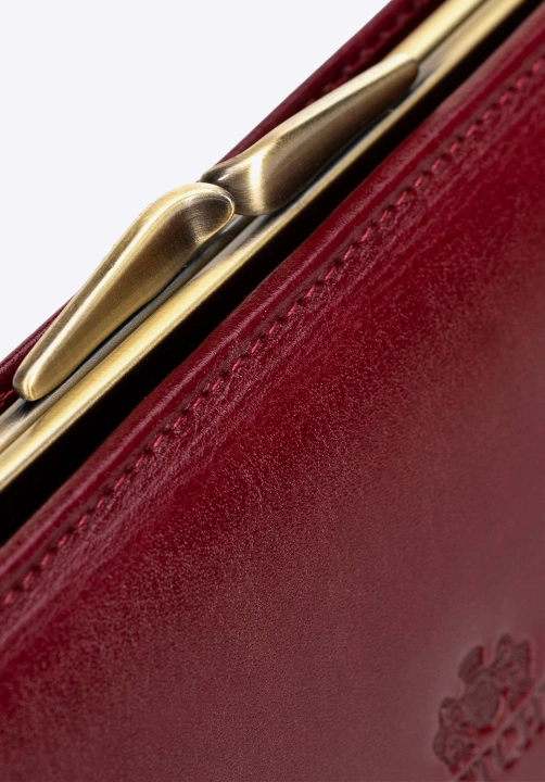 Poznaj dużą portmonetkę damską z klapą w stylu kopertówki, stworzoną dla kobiet, które cenią elegancję, porządek i najwyższą jakość. Wykonana z miękkiej skóry naturalnej, zachwyca subtelnym połyskiem i luksusowym wykończeniem, łącząc klasyczny design z funkcjonalnością. Dzięki przemyślanemu układowi wnętrza pozwala wygodnie przechowywać wszystkie niezbędne dokumenty, karty i gotówkę, pozostając przy tym stylowym dodatkiem do torebki.