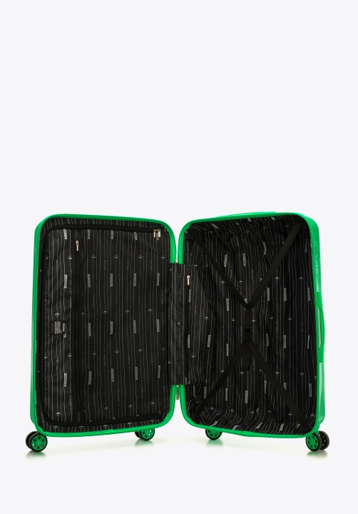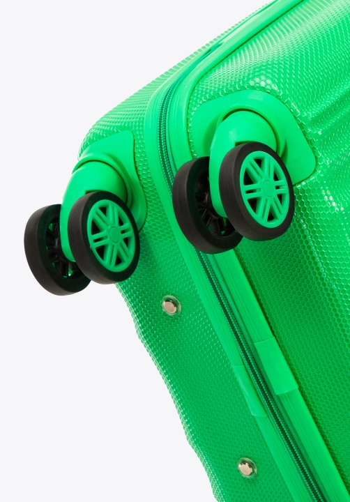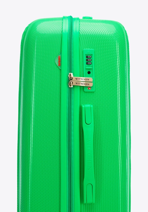 - Estetyka: Dzięki pionowym tłoczeniom i fakturze walizka wyróżni się z tłumu. Taśma suwaka dopasowana kolorystycznie do skorupy walizki.