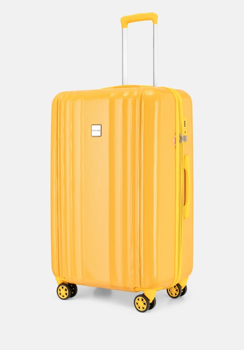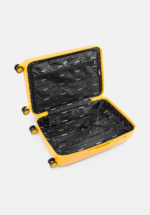 - Estetyka: Dzięki pionowym tłoczeniom i fakturze walizka wyróżni się z tłumu. Taśma suwaka dopasowana kolorystycznie do skorupy walizki.