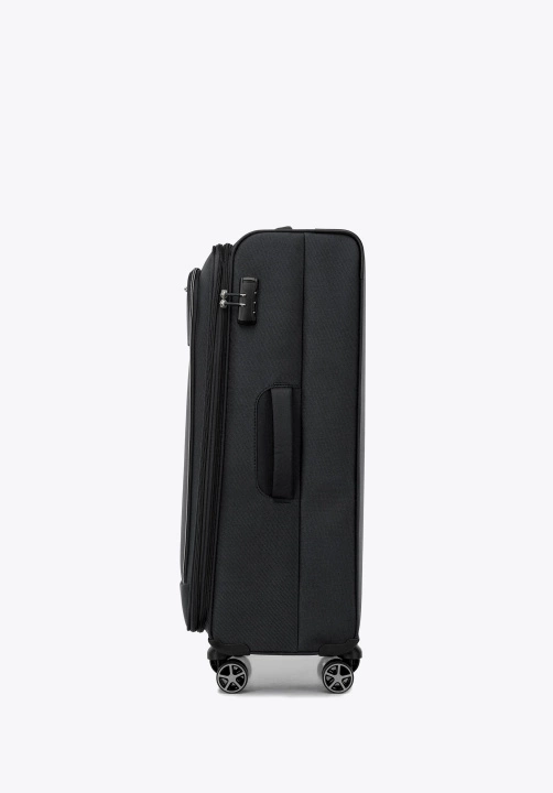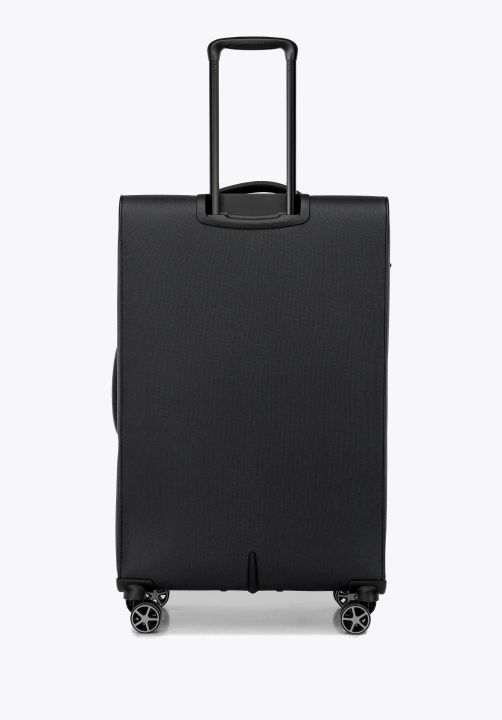 Szukasz bagażu, który pomieści wszystko, czego potrzebujesz na dłuższy wyjazd? Ta duża walizka z miękkiego poliestru to idealne połączenie przestronności, mobilności i nowoczesnego designu. Możliwość poszerzenia o 4 cm daje jeszcze więcej miejsca na dodatkowe rzeczy – bez rezygnowania z porządku czy komfortu użytkowania. Cztery podwójne kółka obracające się w pełnym zakresie 360° gwarantują zwrotność w każdej sytuacji.
