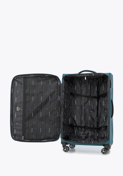 Szukasz bagażu, który pomieści wszystko, czego potrzebujesz na dłuższy wyjazd? Ta duża walizka z miękkiego poliestru to idealne połączenie przestronności, mobilności i nowoczesnego designu. Możliwość poszerzenia o 4 cm daje jeszcze więcej miejsca na dodatkowe rzeczy – bez rezygnowania z porządku czy komfortu użytkowania. Cztery podwójne kółka obracające się w pełnym zakresie 360° gwarantują zwrotność w każdej sytuacji.