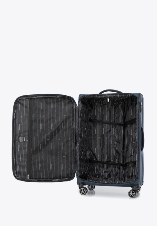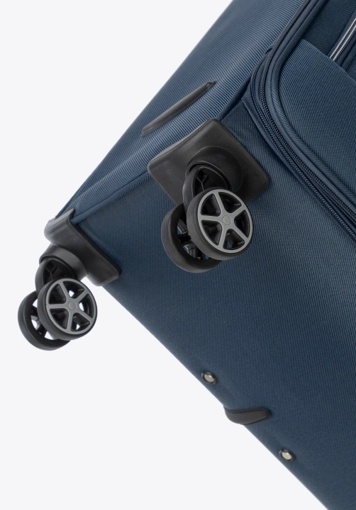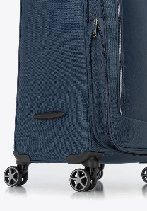 Szukasz bagażu, który pomieści wszystko, czego potrzebujesz na dłuższy wyjazd? Ta duża walizka z miękkiego poliestru to idealne połączenie przestronności, mobilności i nowoczesnego designu. Możliwość poszerzenia o 4 cm daje jeszcze więcej miejsca na dodatkowe rzeczy – bez rezygnowania z porządku czy komfortu użytkowania. Cztery podwójne kółka obracające się w pełnym zakresie 360° gwarantują zwrotność w każdej sytuacji.
