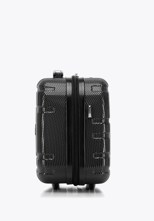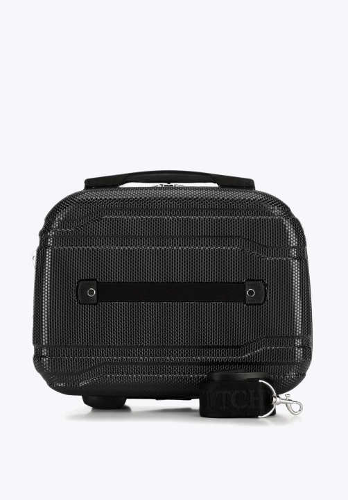 Elegancka twarda kosmetyczka wykonana została z odpornego na wgniecenia i zarysowania materiału - policarbonu. Funkcjonalny model został wyposażony w uchwyt ułatwiający przenoszenie kosmetyczki, odpinany, regulowany pasek oraz elastyczny pas umożliwiający mocowanie na rączce walizki.