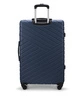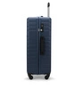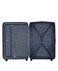 Eleganckie żebrowania na całej powierzchni dodają jej stylowego wyglądu. Wnętrze walizki jest podzielone na dwie części. Jedna jest zapinana na pasy, które umożliwiają przymocowanie bagażu. Natomiast druga komora jest zamykana klapką z dodatkową siatkową kieszonką.