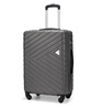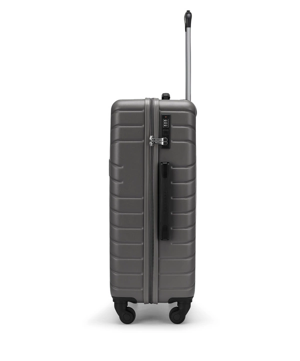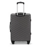 Eleganckie żebrowania na całej powierzchni dodają jej stylowego wyglądu. Wnętrze walizki jest podzielone na dwie części. Jedna jest zapinana na pasy, które umożliwiają przymocowanie bagażu. Natomiast druga komora jest zamykana klapką z dodatkową siatkową kieszonką.