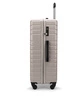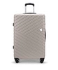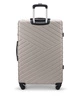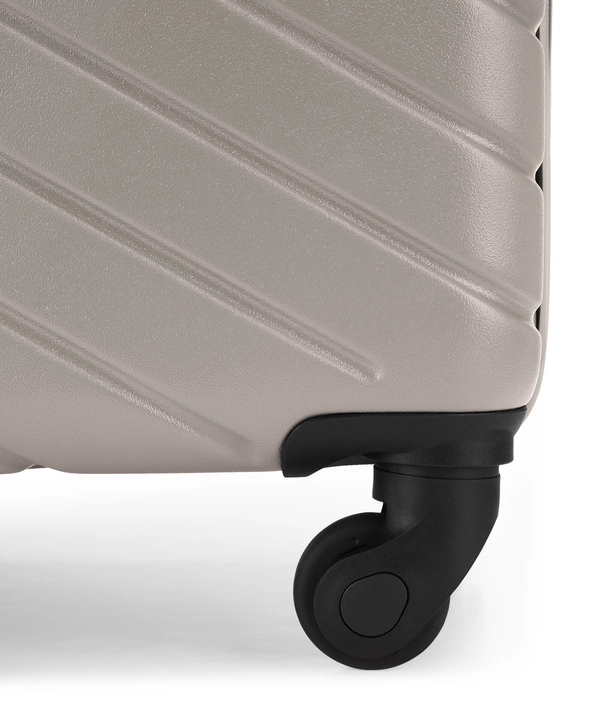 Eleganckie żebrowania na całej powierzchni dodają jej stylowego wyglądu. Wnętrze walizki jest podzielone na dwie części. Jedna jest zapinana na pasy, które umożliwiają przymocowanie bagażu. Natomiast druga komora jest zamykana klapką z dodatkową siatkową kieszonką.