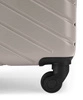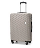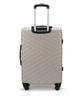 Eleganckie żebrowania na całej powierzchni dodają jej stylowego wyglądu. Wnętrze walizki jest podzielone na dwie części. Jedna jest zapinana na pasy, które umożliwiają przymocowanie bagażu. Natomiast druga komora jest zamykana klapką z dodatkową siatkową kieszonką.