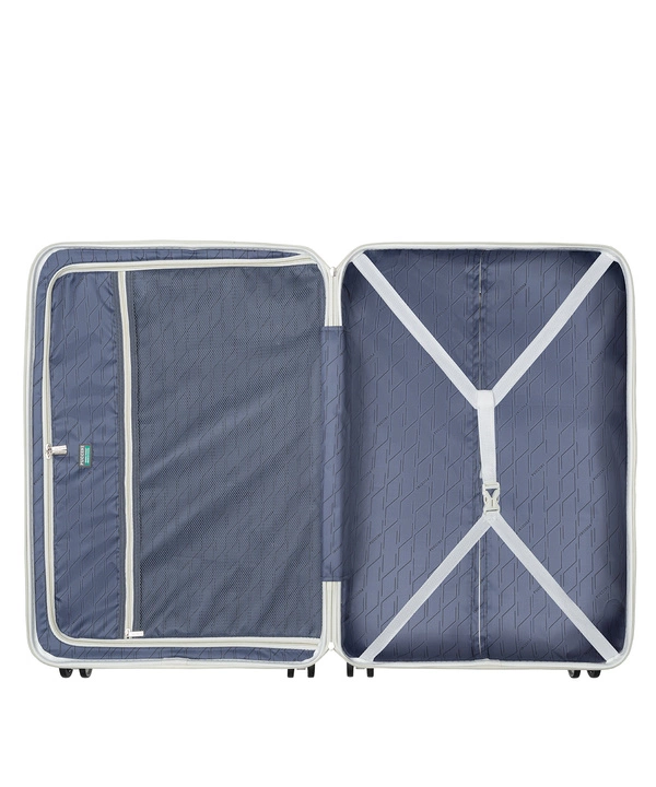 Główna komora walizki podzielona jest na dwie części. Frontową komorę zamyka klapa z kieszenią z siatki na zamek, która zdecydowanie ułatwi organizację bagażu. Druga komora posiada pasy mocujące, służące do przymocowania odzieży, dzięki czemu dotrze ona na miejsce w idealnym stanie. Wszystkie elementy metalowe są w kolorze srebrnym.