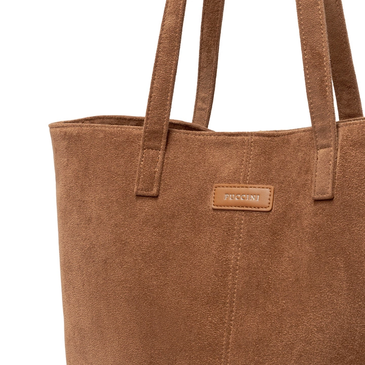 Torebka damska shopperka duża z ekologicznego zamszu jasnobrązowa