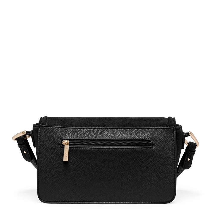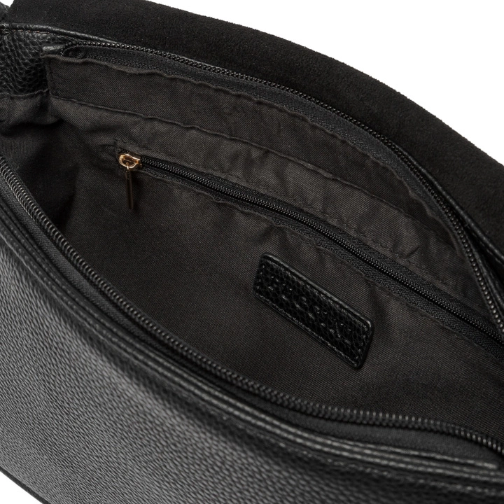 Torebka została zaprojektowana z dbałością o każdy detal. Model zamykany jest na zamek i klapę z magnesowym zatrzaskiem. W środku znajdują się dwie, małe kieszenie na drobiazgi: otwarta i zamykana suwakiem. Dodatkowo z tyłu torebki również znajdziemy funkcjonalną, zamykaną kieszeń. Wnętrze wyściełane zostało logowaną podszewką.