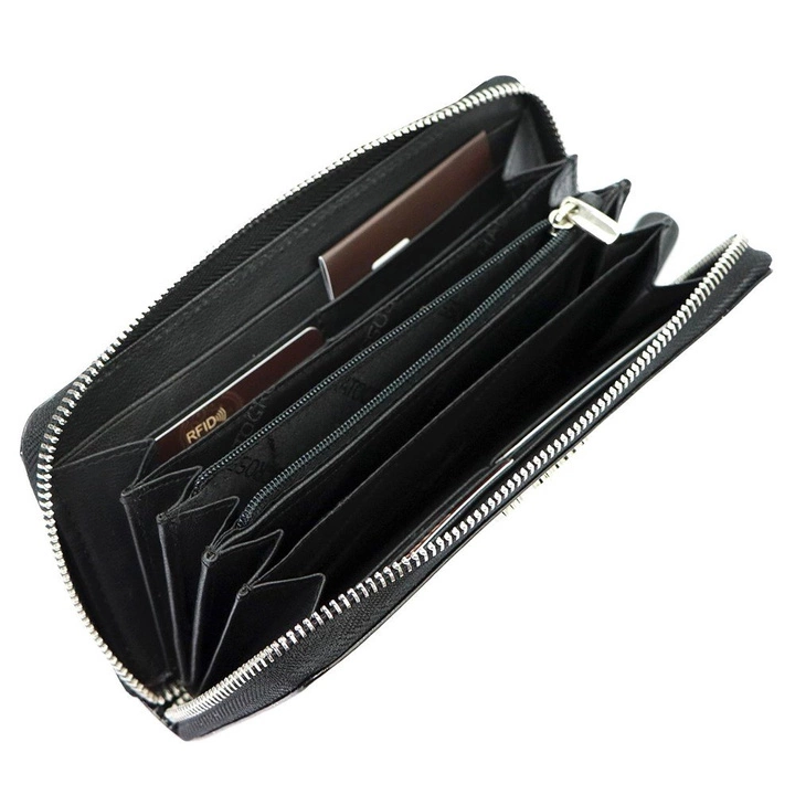 Produkty oznaczone symbolem RFID zaprojektowane są w ten sposób, by chronić karty kredytowe i debetowe z wbudowanym chipem RFID (Radio Frequency Identyfication) przed nieuprawnionym skanowaniem karty, gdy ta znajduje się wewnątrz zamkniętego portfela. Producent i dystrybutor tego produktu nie ponoszą odpowiedzialności za skutki nieautoryzowanego skanowania przechowywanych w nim kart.