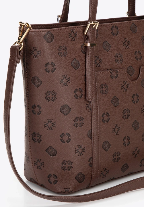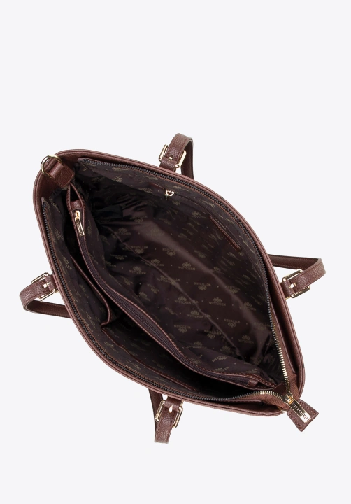 Szukasz torebki, która pomieści więcej niż tylko niezbędne minimum, a jednocześnie podkreśli Twój styl? Ta shopperka z ekoskóry, która doskonale imituje naturalną skórę, łączy w sobie funkcjonalność z nowoczesnym designem. Wytrzymały materiał odporny na ścieranie, zarysowania i uszkodzenia mechaniczne gwarantuje, że torebka zachowa nienaganny wygląd na długo. Dwie regulowane rączki pozwalają wygodnie nosić ją zarówno na ramieniu, jak i w dłoni, a odpinany pasek daje jeszcze więcej swobody stylizacji. Charakteru nadaje jej tłoczona sygnatura, wykonana specjalistyczną technologią i cieniowana, która wyróżnia ten model na tle innych.