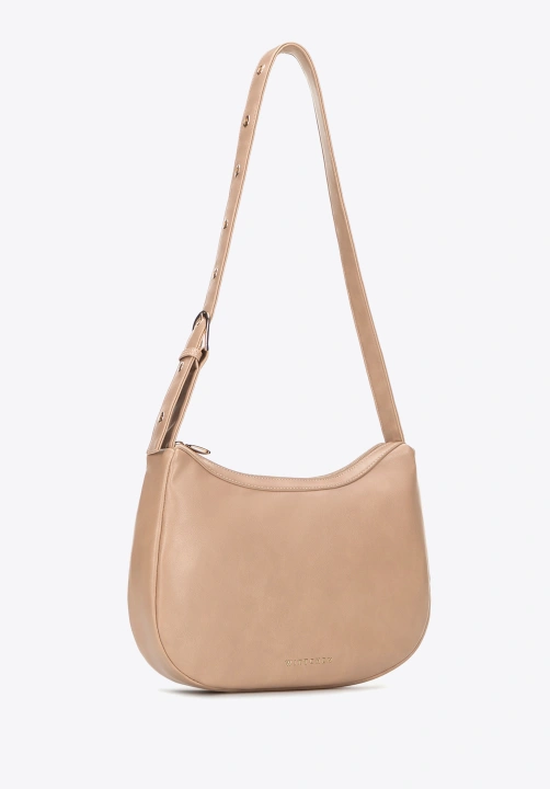 Lekka, praktyczna i pełna uroku – ta półokrągła listonoszka z ekoskóry sprawdzi się w każdej codziennej sytuacji. Dzięki dwóm kieszeniom, w tym jednej zamykanej na suwak, wszystkie niezbędne drobiazgi masz zawsze pod ręką. Regulowany pasek pozwala nosić ją na ramieniu lub na skos, idealnie dopasowując się do Twojego stylu i rytmu dnia.
