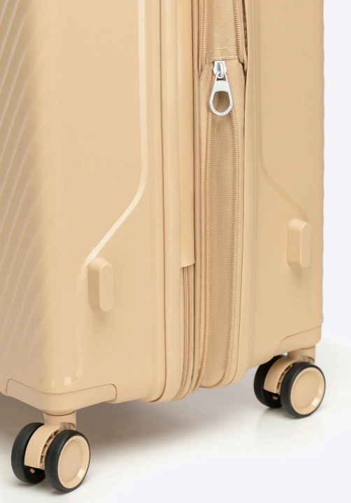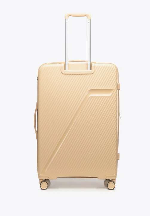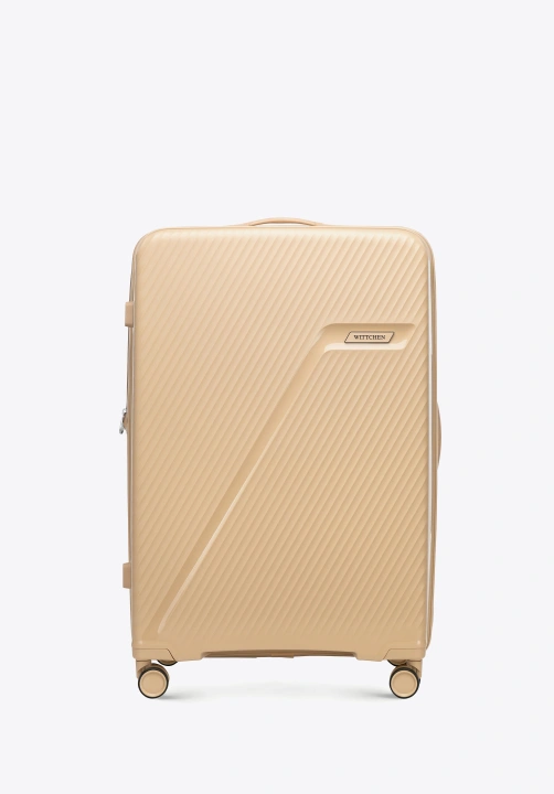 Szukasz walizki, która sprosta wyzwaniom dłuższych podróży i jednocześnie będzie prezentować się stylowo na lotnisku czy w hotelowym lobby? Ten duży model WITTCHEN z kolekcji WIN LINE to idealne połączenie funkcjonalności, wytrzymałości i nowoczesnego designu. Wykonany z polipropylenu, wyróżnia się lekką, wytrzymałą konstrukcją oraz unikalnym wzorem w ukośne pasy z elegancko wkomponowanym logo. A gdy miejsca zabraknie – skorzystaj z opcji poszerzenia i zyskaj dodatkowe 4 cm przestrzeni na pamiątki z podróży.