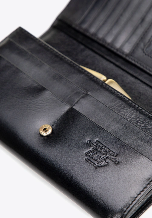 Duża portmonetka damska z kolekcji Italy, bardzo starannie i estetycznie, ręcznie wykonana z miękkiej skóry cielęcej. Logo - herb WITTCHEN wytłoczony w skórze. Zapakowana jest w ekskluzywne opakowanie - sygnowane logo WITTCHEN. Idealna dla Pań ceniących sobie niepowtarzalną precyzję wykonania oraz ciekawą stylistykę