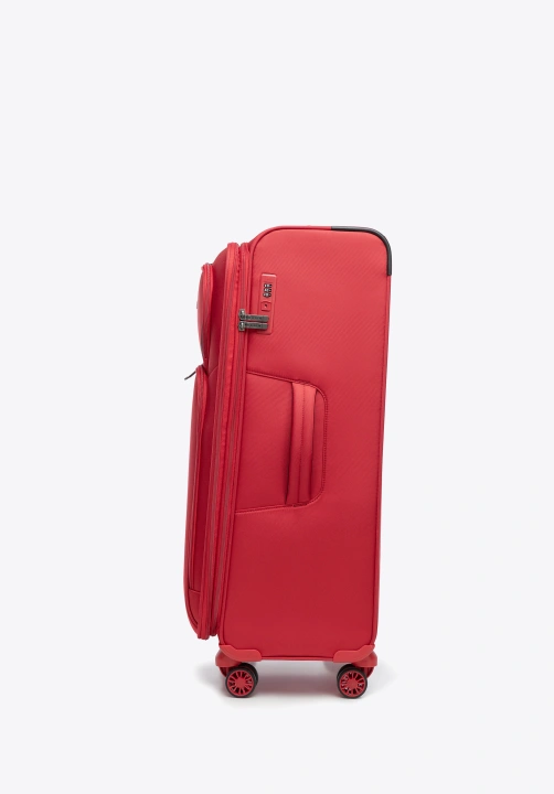 Przestronna, solidna i funkcjonalna — ta duża walizka z kolekcji Prime Line została stworzona dla osób, które potrzebują dużo miejsca, nie rezygnując z komfortu i porządku. Wykonana w 100% z poliestru, z możliwością poszerzenia o 4 cm, łączy trwałość z nowoczesnym designem. Cztery podwójne kółka, teleskopowa rączka z blokadą oraz uchwyty — górny i boczny — zapewniają łatwe prowadzenie, pewne podnoszenie i wygodną obsługę nawet pełnego bagażu.
