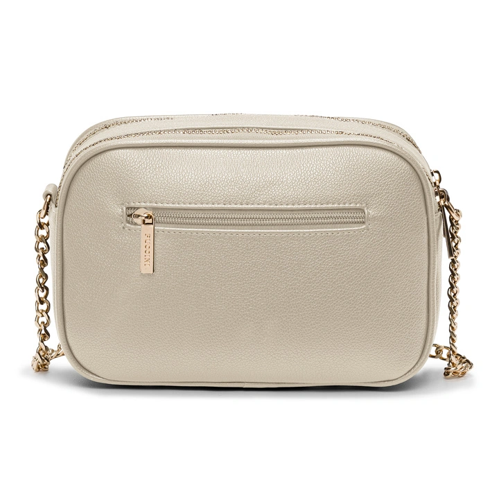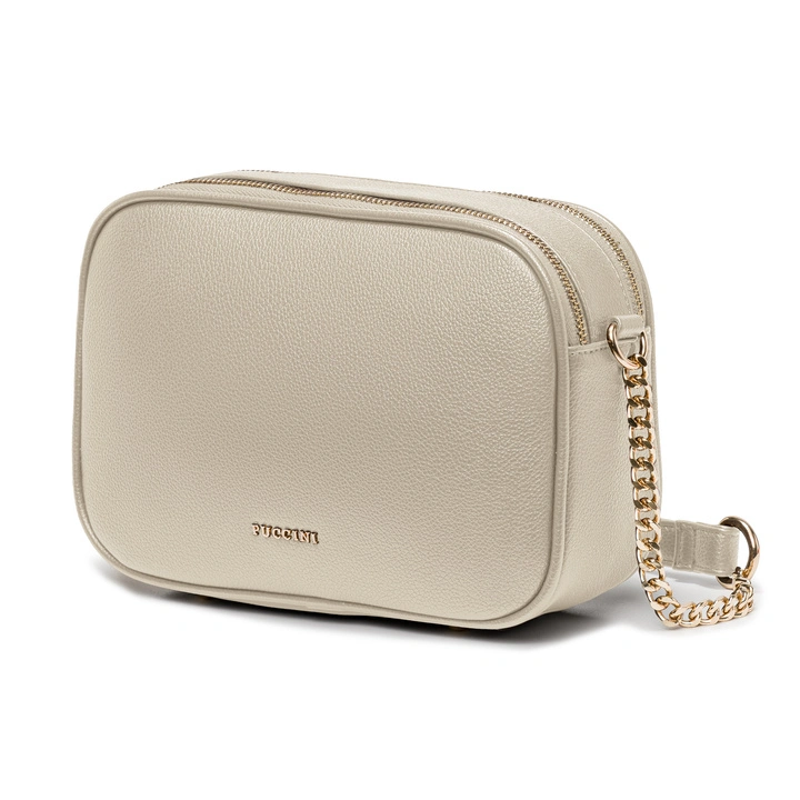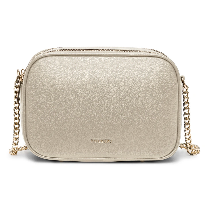 Torebka posiada dwie zapinane na zamek komory. Wewnątrz znajdują się dwie dodatkowe kieszonki, jedna otwarta i druga zamykana na suwak. Torebkę wygodnie nosi się na ramieniu lub jak torebkę crossbody. Na froncie umieszczone jest logo PUCCINI, tak samo jak wszystkie metalowe detale, jest ono w kolorze złotym. Na dnie torebka została wyposażona w nóżki, które dodatkowo chronią torebkę przed zniszczeniem.