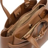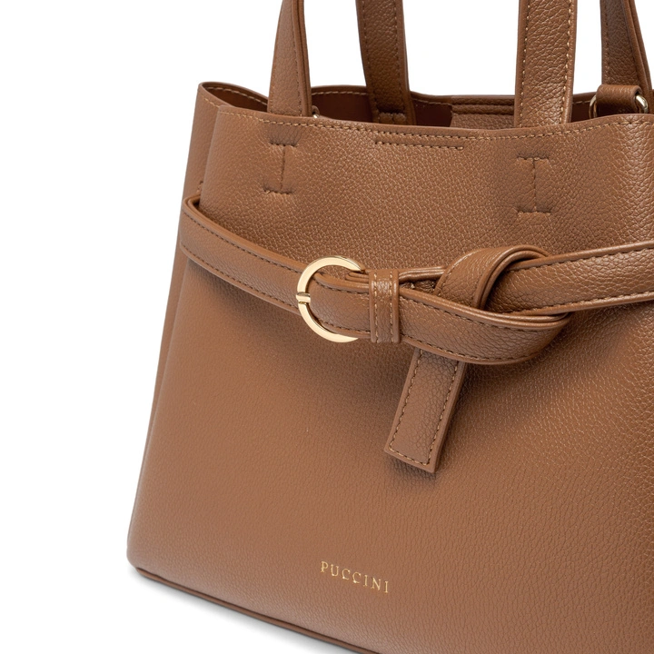 Torebka została wykonana z wysokiej jakości skóry ekologicznej. Na froncie znajduje się stylowa ozdoba w formie paska. Model posiada trzy praktyczne komory, dzięki czemu mimo swoich średnich rozmiarów jest pojemny. Przednia i tylna komora są zapinane na magnesowy zatrzask, natomiast środkowa zamyka się na zamek. Dodatkowo w głównej komorze znajdziemy małą kieszeń na drobiazgi.