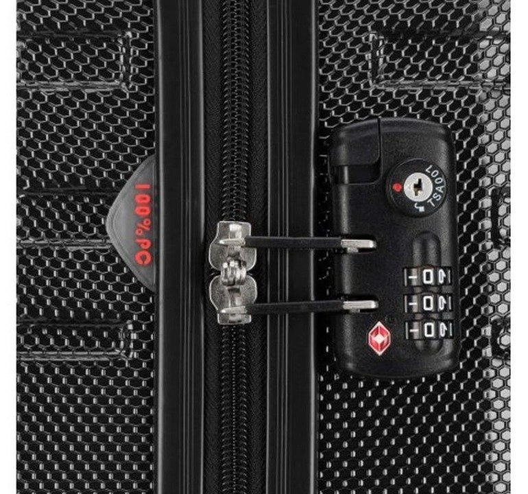 - system TSA, bardzo przydatny w przypadku rewizji bagażu przez służby celne - gwarantuje on bezinwazyjne otwarcie walizki oraz jej ponowne zamknięcie bez uszkodzenia zamka;