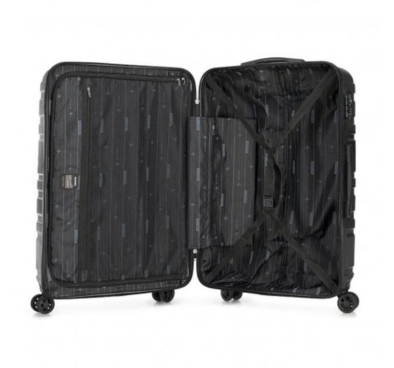 Walizka o dużej wielkości wykonana z policarbonu, który charakteryzuje się porowatą powierzchnią pozwalającą zachować na długo walizkę w dobrym stanie. W prezentowanym zestawie wysoka funkcjonalność idzie w parze ze współczesnym designem. Poziome linie oraz niebanalna kolorystyka zachwycą tych, którzy podążają za trendami.