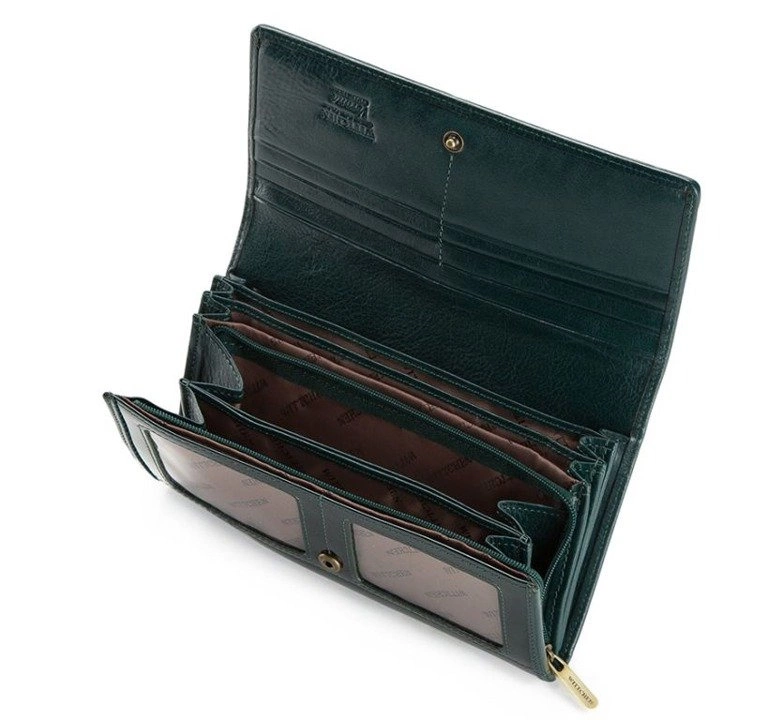 Duży portfel damski z kolekcji Italy, bardzo starannie i estetycznie, ręcznie wykonany z miękkiej skóry cielęcej. Logo - herb WITTCHEN wytłoczony w skórze. Portfel wyposażony został w innowacyjną podszewkę, która blokuje możliwość zdalnego skanowania danych z kart. Idealny dla Pań ceniących sobie niepowtarzalną precyzję wykonania oraz unikatowe wzornictwo. Zapakowany jest w ekskluzywne opakowanie - sygnowane logo WITTCHEN.
