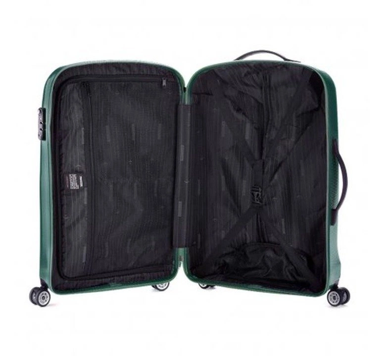 Średnia walizka z kolekcji PC Ultra Light. Wykonana z bardzo trwałego i odpornego na zarysowania polikarbonu. Posiada cztery kółka wykonane z tworzywa ABS i pokryte termoplastyczną powłoką, dodatkowo aluminiową, trzystopniową, teleskopową rączkę z blokadą, dwa elastyczne, gumowe uchwyty do ręki. Zabezpieczenie w postaci zamka szyfrowego uniemożliwiającego osobom niepożądanym dostęp do wnętrza. Dodatkowo system TSA, bardzo przydatny w przypadku rewizji bagażu przez służby celne. Gwarantuje on bezinwazyjne otwarcie walizki oraz jej ponowne zamknięcie, bez uszkodzenia zamka.